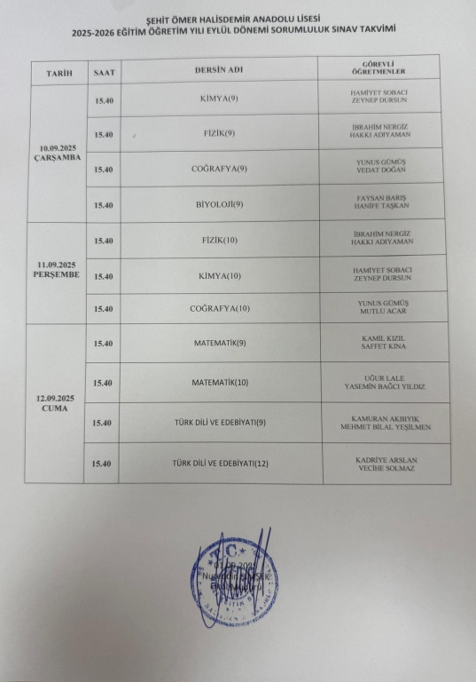 2025-2026 EĞİTİM ÖĞRETİM YILI EYLÜL DÖNEMİ SORUMLULUK SINAV TAKVİMİ AÇIKLANDI